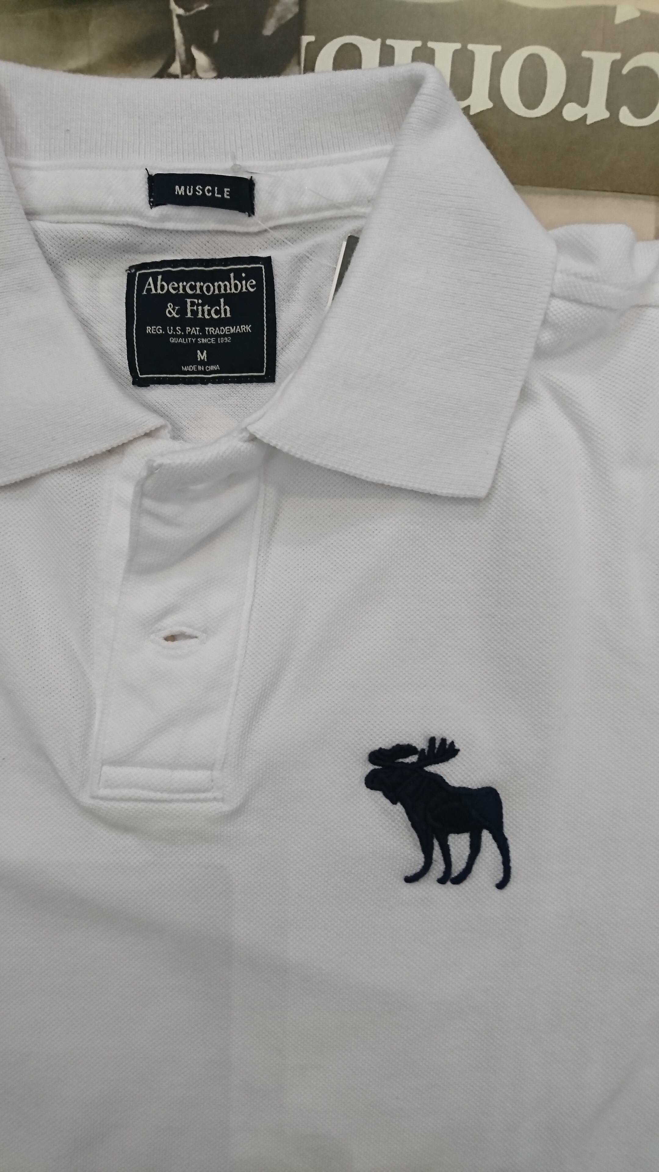 清潔感がある定番アバクロホワイトポロシャツです☆